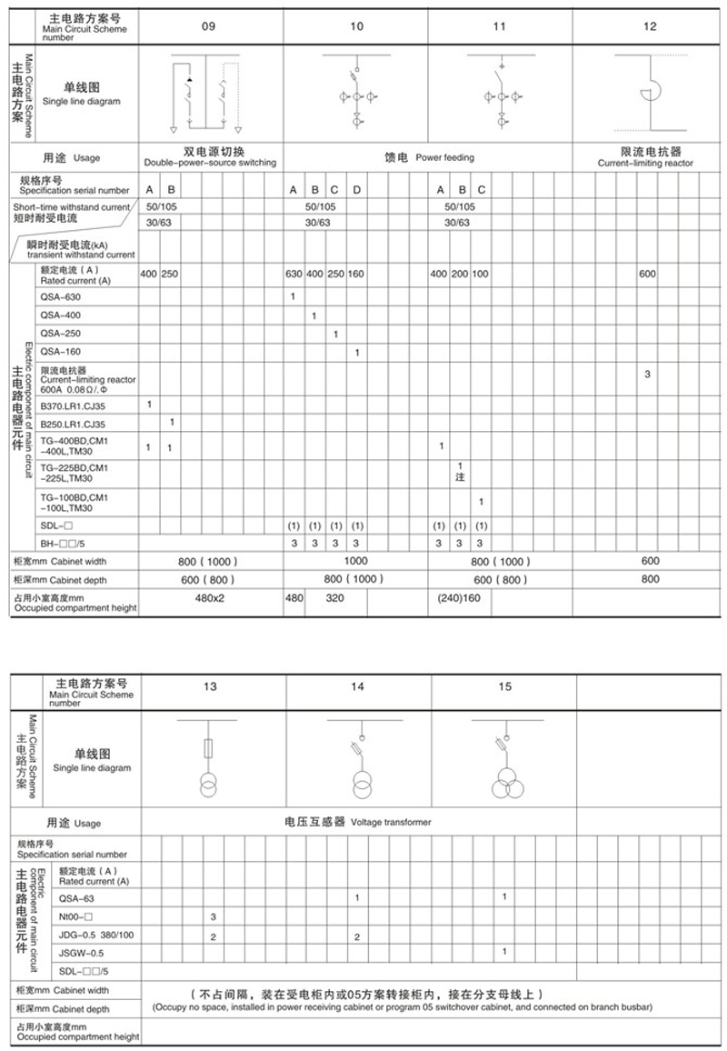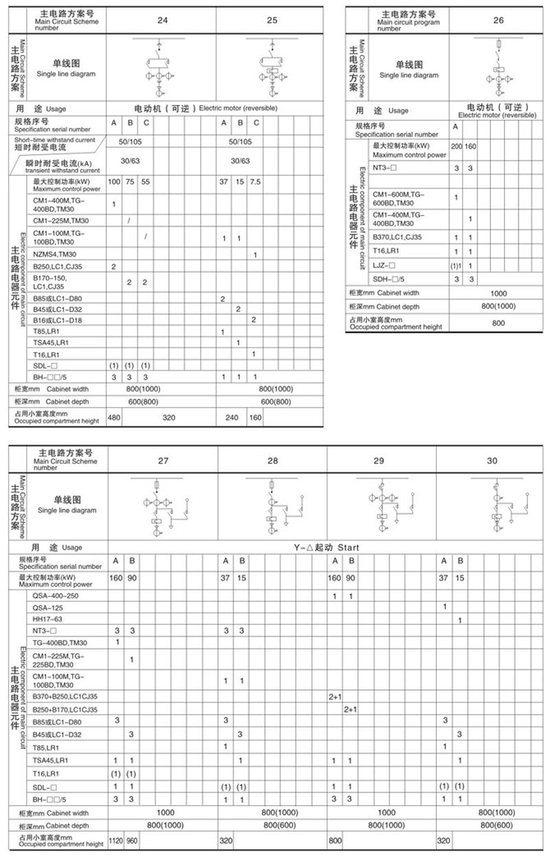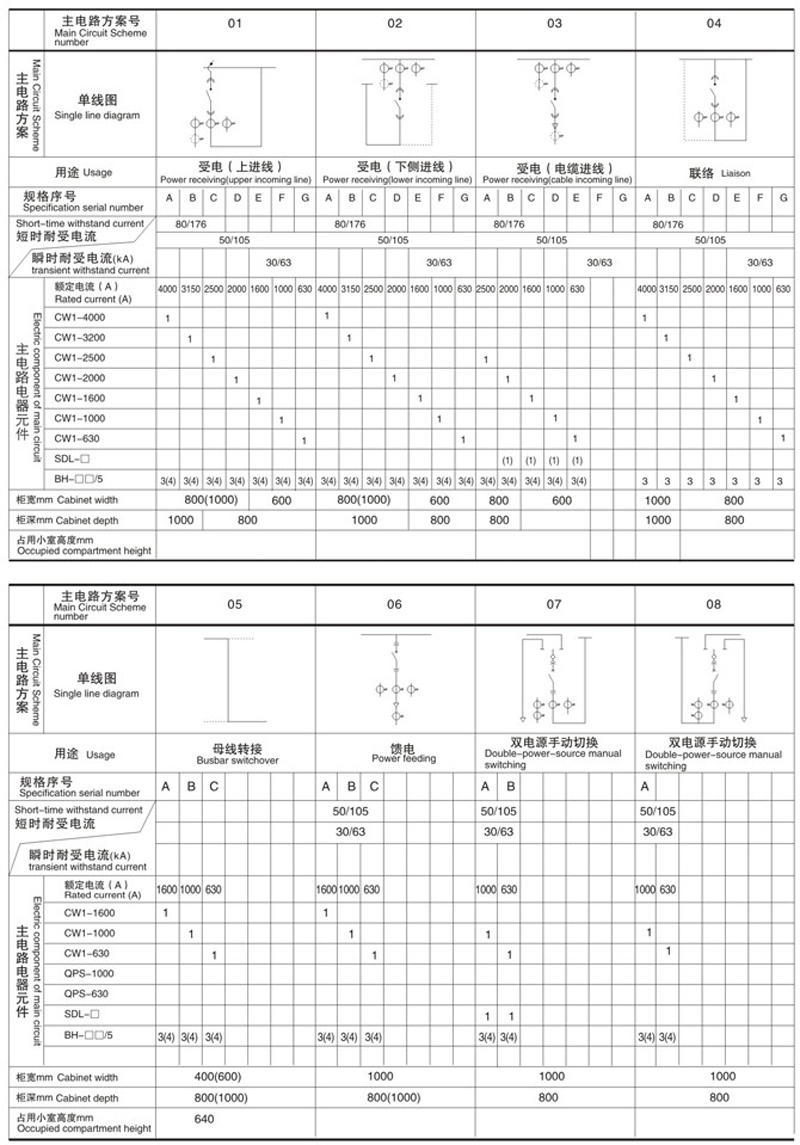裝置主電路方案共33組118個規(guī)格(見下表},不包括由輔助電路的控制與保護的變化而派生的方案和規(guī)格,包括了發(fā)電、供用電和其它電力用戶的需要,額定工作電流為4000A.適合2500kVA及以下的配電變壓器選用。此外,為適應(yīng)供用電提高功率因數(shù)的需